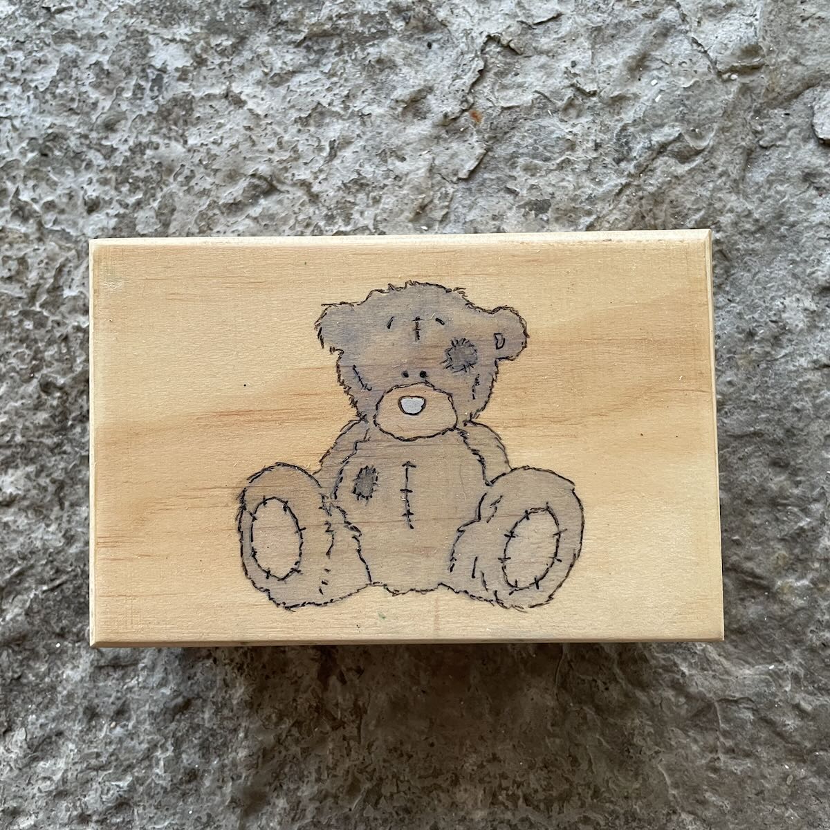 A simple hinged box decorated with a cute hand-painted with a teddy bear.