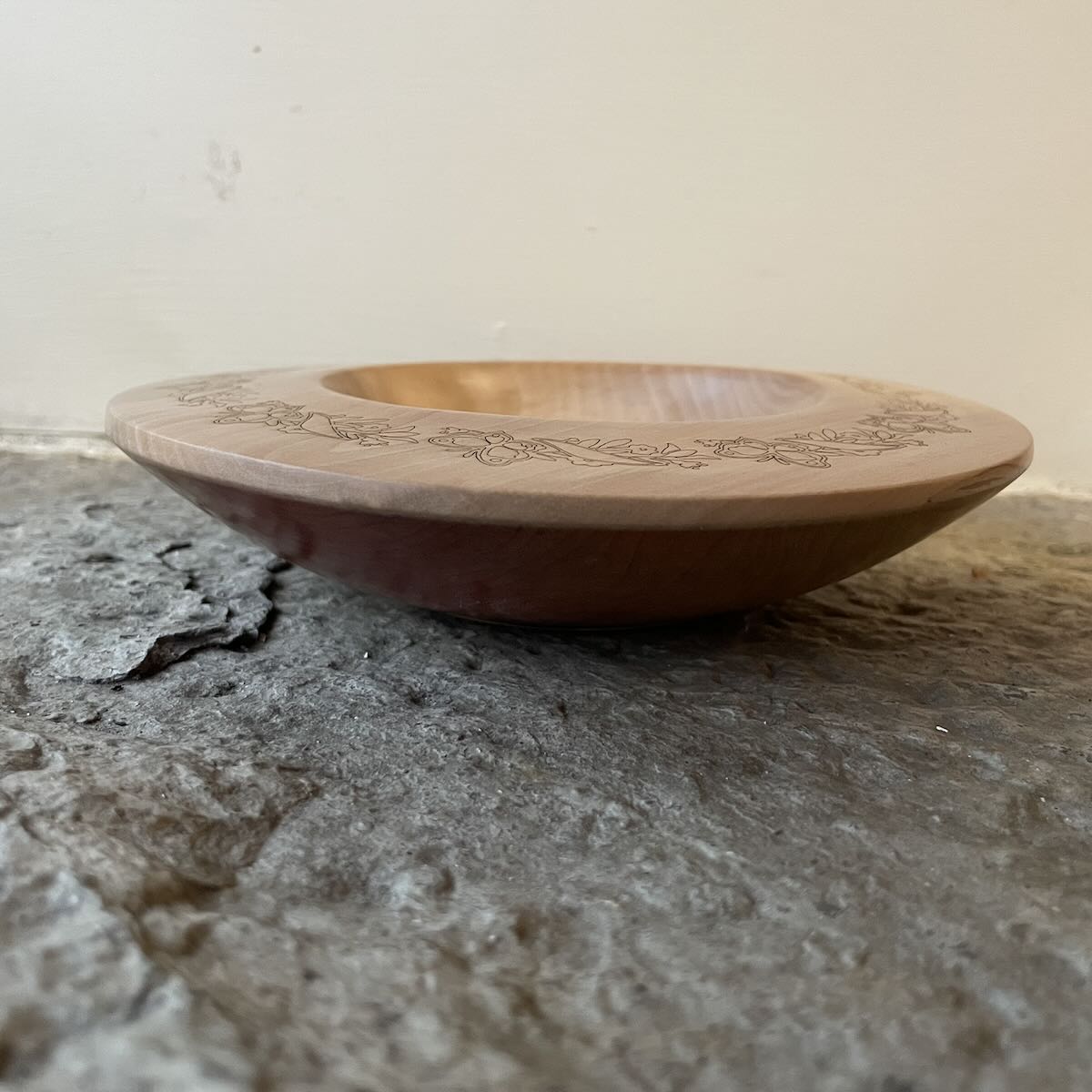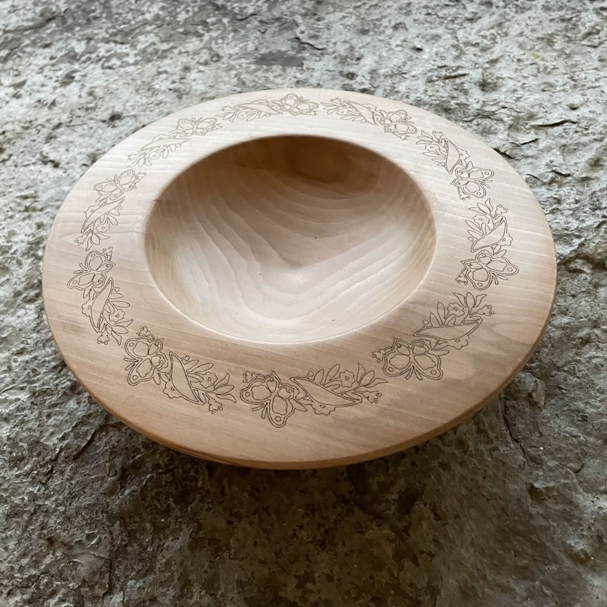 A hand turned laser decorated bowl.